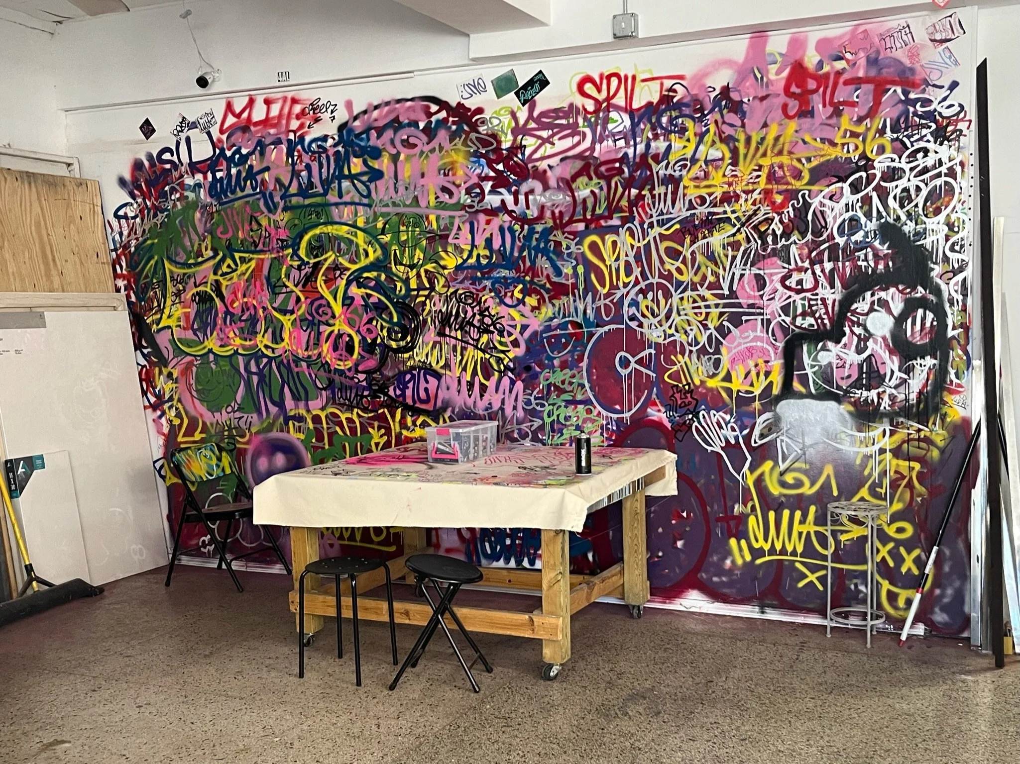 In September 2023, Megan’s Framing also opened a legal wall inside on the back wall of her storefront for the regular Saturday Artist Kickback events.