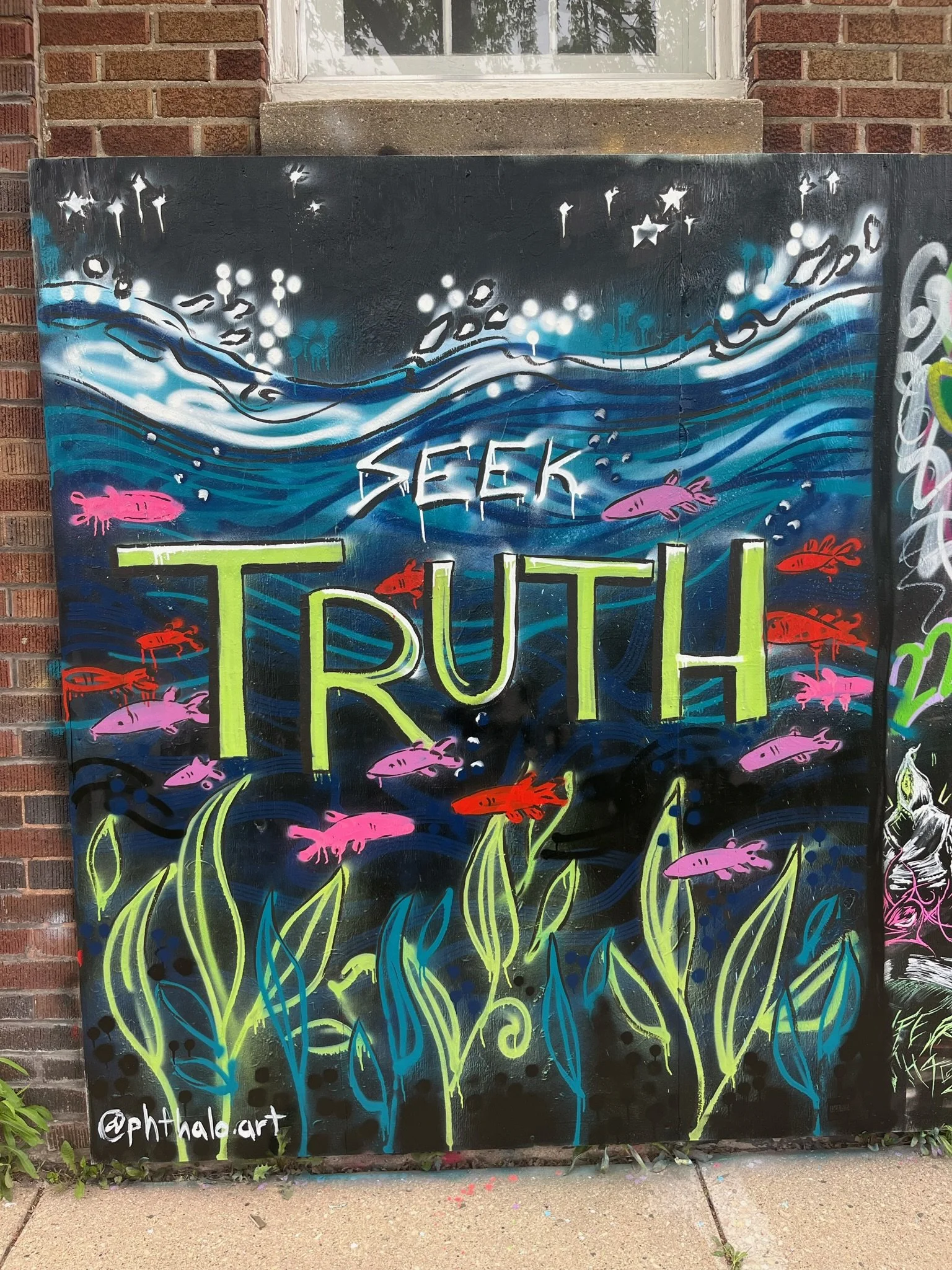 Megan, from Megan’s Framing, worked hard to set up and get permits to have a legal space on the side of her building, right next to our building, for art and graffiti.
