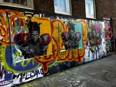 Two walls were initially created outside alongside N 6th Street. One was for larger pieces commissioned from professional artists by Eli’s. The second, smaller wall, is open to the public and all other artists to use and express themselves. The walls have been open officially open since spring 2023.